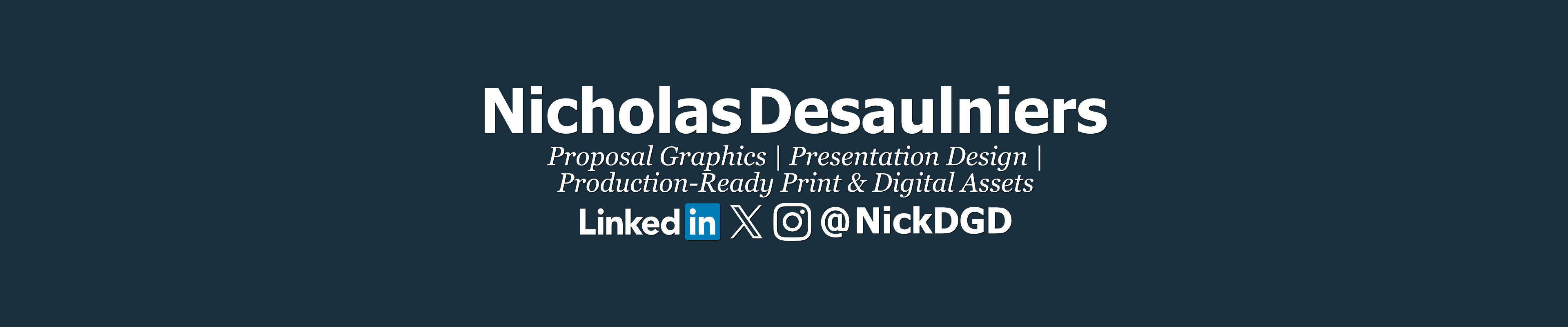 I’m a Maryland-based graphic designer focused on proposal graphics, structured page systems, and production-ready materials. My work combines strong typographic hierarchy with workflow awareness, ensuring designs are clear, consistent, and ready for real-world use.I’ve supported consulting firms, small businesses, and technical teams with proposal visuals, presentation systems, and print materials built for clarity and dependability.